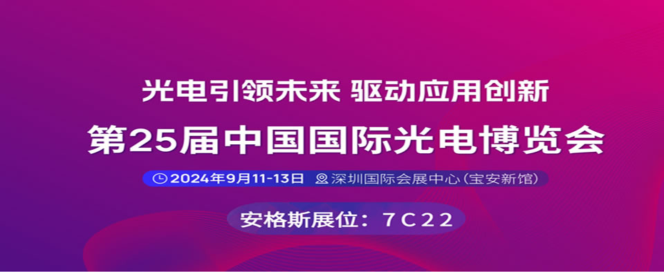 第25屆中國國際光電博覽會 日期:2024.9.11-13 地點:深圳國際會展中心 安格斯展位號:7C22 期待您的到來!